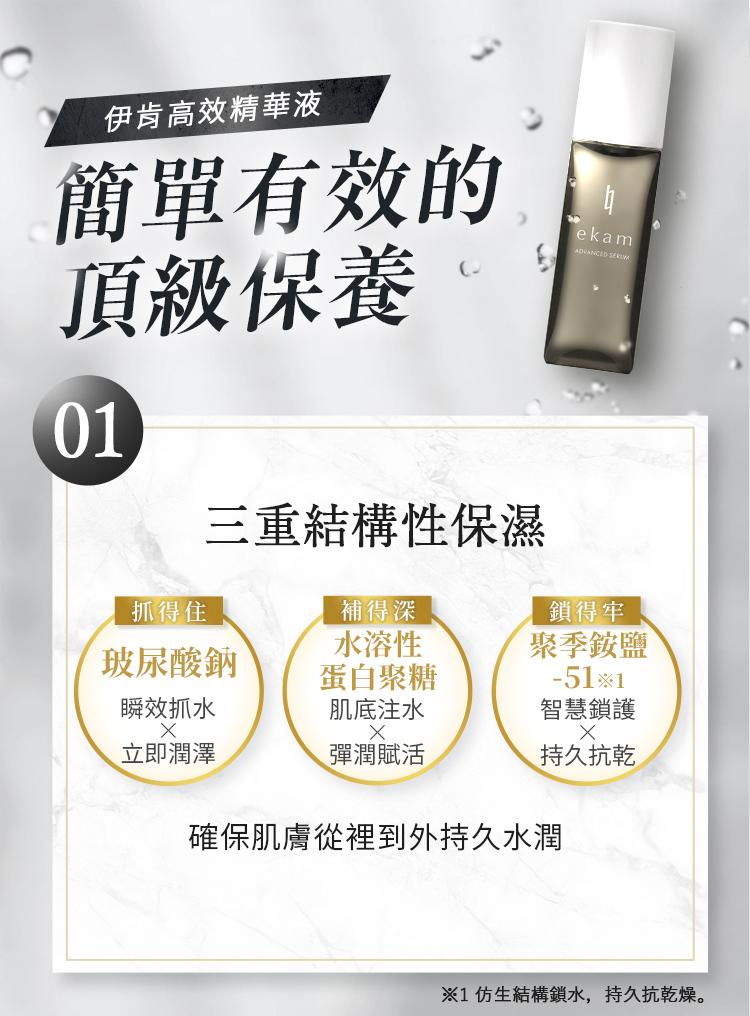 ● 獨家「三效保濕結構」,瞬效抓水、深層注水、智慧鎖水,實現全天候的持久水潤。