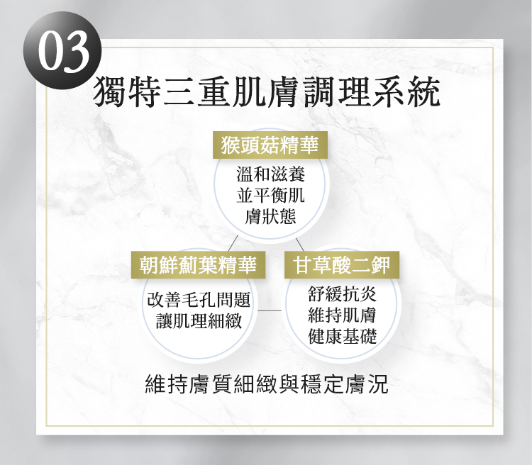 ● 三重精華協同作用,細緻毛孔、舒緩抗敏,全方位穩住肌膚小情緒。