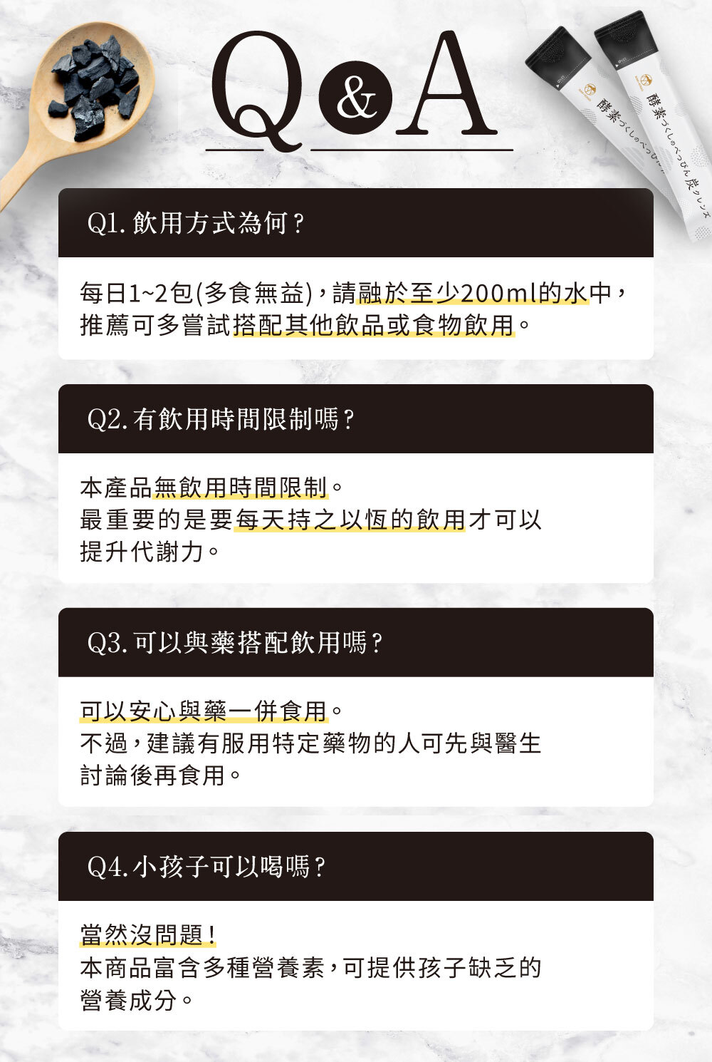 ※蝦皮販售的EX版粉末顏色為灰黑色,是炭成分的天然顏色,與官網販售的偏灰白色粉末不同,請安心食用